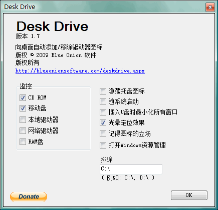 Desk Drive 是這樣的一個小軟件:當(dāng)你插入閃存時,它會自動在桌面上添加一個指向閃存的快捷方式;當(dāng)你拔出閃存后,該快捷方式也會立即消失。