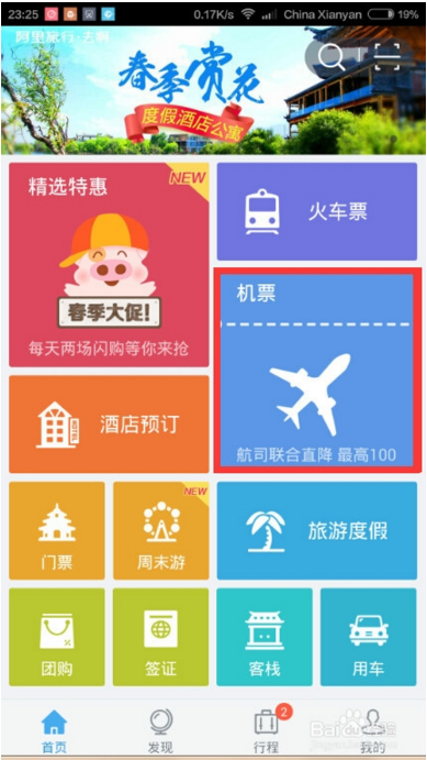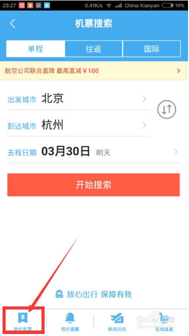 國內(nèi)機票新用戶首單購票立減20元,首頁新增特價機票功能