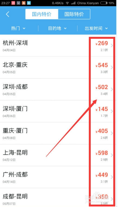 3、然后就會彈出來好多的特價機票,呵呵,這個想來一個想起就去的旅行還是可以的哦。