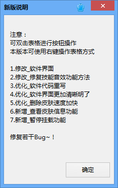 4、1.5版本修復(fù)BUG,掛載時(shí)選中要掛載的皮膚,第一次使用時(shí)請(qǐng)將要掛載的皮膚掛載2次 否則沒(méi)法掛載,卸載時(shí)請(qǐng)選擇要卸載的皮膚名稱