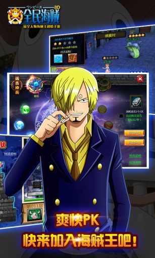 本世紀(jì)最偉大的漫畫《海賊王》不知不覺已經(jīng)連載了17年了!作為以《海賊王》為主題的手游《全民海賊》絕對值得大家去玩玩看!《全民海賊王》10年熱血征程,海賊王的伙伴與夢想齊肩!游戲擁有經(jīng)典劇情結(jié)合細(xì)膩精致畫面,人物、技能、場景,傾力呈現(xiàn)3D極致海賊世界。全新爭霸賽系統(tǒng),勁爽海上霸主對決;立體迷宮無限挑戰(zhàn),超級寶箱及經(jīng)驗產(chǎn)出陪你開懷暢玩;閃亮變身系統(tǒng),神秘技能所向披靡;海上熱血陣營,火爆刺激競技精彩活動結(jié)合強(qiáng)大玩法帶你一起乘風(fēng)破浪、追逐陽光與夢想。原汁原味的冒險世界,和我一起開啟驚心動魄的海上冒險之旅吧!