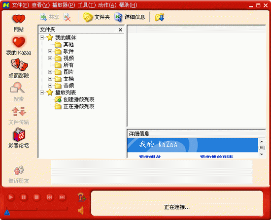 KaZaA 是一款非常優(yōu)秀的點對點文件共享工具,提供會員們下載分享出來的資源,簡易的搜尋,讓您快速的找到想要的文件,包括音樂、影片、軟件、游戲、圖片以及文件