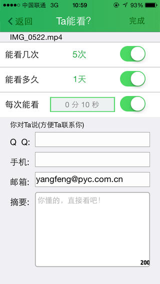 接收方只能在發(fā)送方預(yù)設(shè)的可讀天數(shù)、次數(shù)內(nèi)閱讀,也可轉(zhuǎn)發(fā)給其他人。發(fā)送方可隨時(shí)終止、延長(zhǎng)、縮短預(yù)設(shè)的閱讀條件。