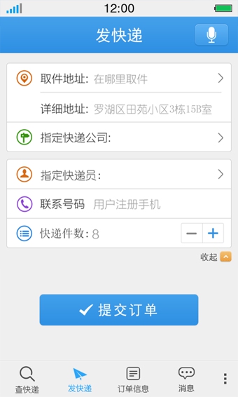 2.新增在線(xiàn)發(fā)快遞業(yè)務(wù),順豐快遞等可以一鍵預(yù)約下單。