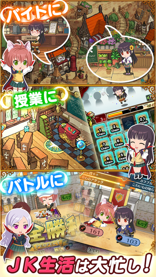 《JK吸血鬼命運(yùn)的祭日(JKヴァンパイア~運(yùn)命のフェスタ~)》是一款模擬育成 SLG 手游,玩家使用拼圖的方式培育魔界女子高中生!在游戲中,玩家扮演剛到“圣阿卡迪亞學(xué)園”上任的教師,需要在20天的學(xué)期內(nèi)教育培養(yǎng)魔界的女子高中生。每天可以讓她們打工、上課,而上課的方式正是通過拼圖來進(jìn)行。拼圖過程中學(xué)生會(huì)向玩家提問需要向哪個(gè)方向?qū)W習(xí),最終會(huì)導(dǎo)致不同的能力值提升。另外課程達(dá)到指定分?jǐn)?shù)才能順利完成,否則會(huì)失敗。【游戲特點(diǎn)】