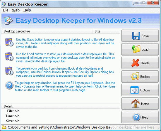 您的位置:起點(diǎn)軟件下載電腦軟件系統(tǒng)軟件Easy Desktop Keeper V2.30 英文綠色特別版