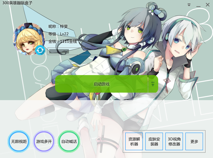 300英雄蹦跶盒子是一款新版的游戲盒子。該盒子界面精致簡單,輔助功能多樣且強(qiáng)大。還有無限視距、皮膚補(bǔ)丁安裝、對戰(zhàn)信息查詢、個人戰(zhàn)績查詢外,還擁有游戲多開、優(yōu)化啟動等實用功能。