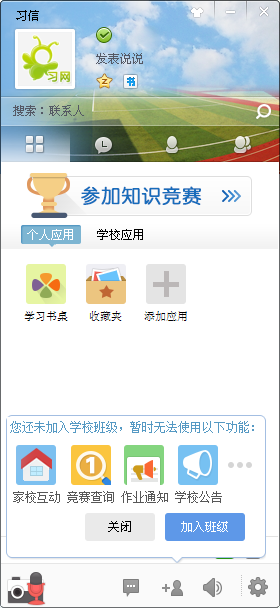 1、基本功能編輯聊天:支持發(fā)送語音、涂鴉、視頻、圖片(包括表情)、文字,支持多人群聊。添加好友:習信支持查找習信號(貼心小提示:點擊習信界面的添加按鈕還不能搜索群,群并不等同于班級,進入PC端界面上方的習信空間—快速添加—>搜號碼然后輸入想搜索的習信,然后點擊查找即可);