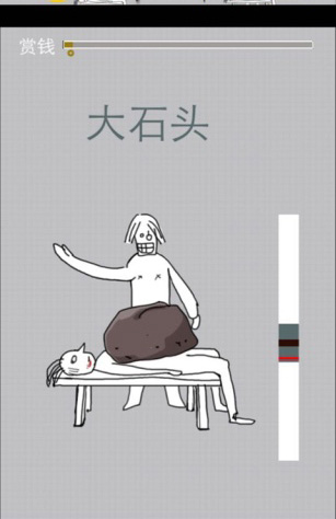 《胸口碎大石》是一款非常搞怪的休閑益智類游戲,進入游戲就會看到兩個屌絲,一個躺在凳子上,抱著石頭,另一個揮手準備砍下去,你要做的就是控制砍石頭的那個人,屏幕右邊有一個力量槽,中間的灰色區(qū)域是有效區(qū)域,在這個區(qū)域停下來就是成功的砍碎石頭,如果出了這個部分,那就GG了。游戲聽上去就像是街頭賣藝的,沒錯!他其實就是一個賣藝的游戲,不過這次劈石頭的就是你!喜歡的玩家可以挑戰(zhàn)一下自己的反應。【游戲特點】
