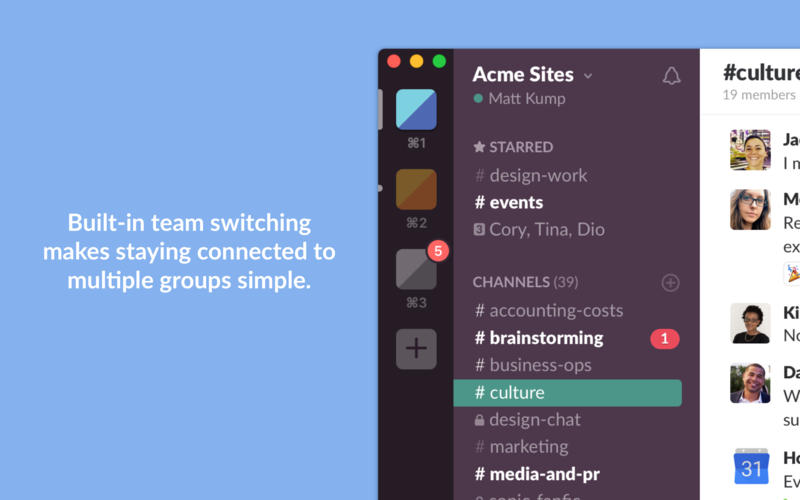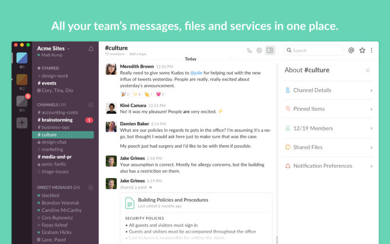 Slack for mac是Mac os平臺(tái)上的一款整合了聊天群組 + 大規(guī)模工具集成 + 文件整合 + 統(tǒng)一搜索的Mac社交通訊軟件,目前,Slack for mac已經(jīng)整合了電子郵件、短信、Google Drives、Twitter、Trello、Asana、GitHub 等 65 種工具和服務(wù)。【軟件特點(diǎn)】