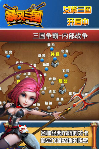 暴風(fēng)三國(guó)下載是一款好玩的休閑策略手游。游戲畫(huà)面精致,人物Q萌,游戲內(nèi)容情節(jié)豐富。玩家可在游戲中打造堅(jiān)不可摧的城池,攻打其他霸國(guó),鞏固自己的地位。