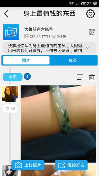 “大象冊” 是一款免費的多人照片共享手機軟件,它能夠讓一群人快速上傳與交換手機里的照片,并以群相冊的方式瀏覽,整個過程簡單快速有趣。所有照片還能一鍵分享到短信、微博、微信,以及將別人的照片下載保存到自己的手機里。無論是派對、生日、婚禮、旅游,或者其他聚會,“大象冊” 都是收藏和共享照片的最好選擇。從此告別數(shù)據(jù)線,再也無需繁瑣地手動導(dǎo)出到電腦、向他人四處索要。更方便的是,這些照片,還不會占你本地空間!