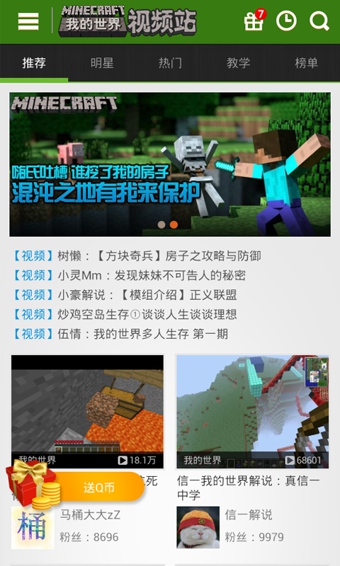 我的世界視頻愛(ài)拍是一款專為喜歡玩《我的世界》游戲的玩家們提供的視頻解說(shuō)基地,為玩家們提供了海量明星、高手視頻教程,幫助玩家在游戲中有更加出色的發(fā)揮。