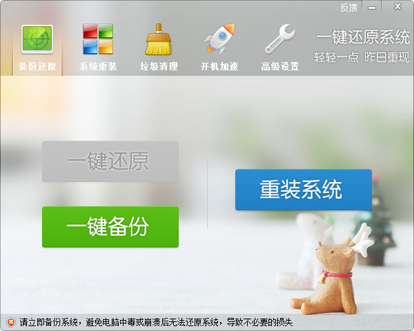 安裝完成后,您可以從桌面雙擊“一鍵還原系統(tǒng)”,然后您就看到了下圖所示的界面