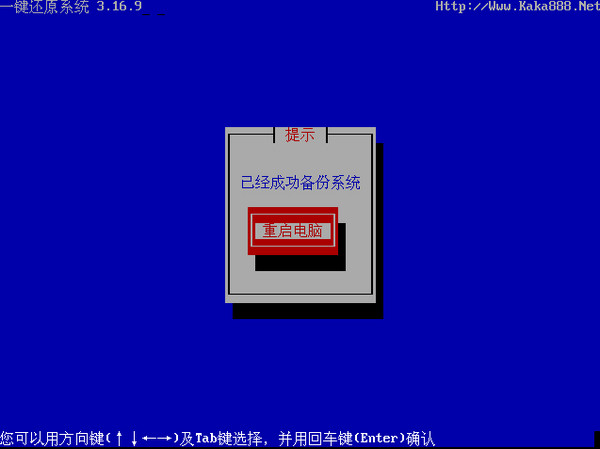 備份完成后,會(huì)提示您重啟電腦