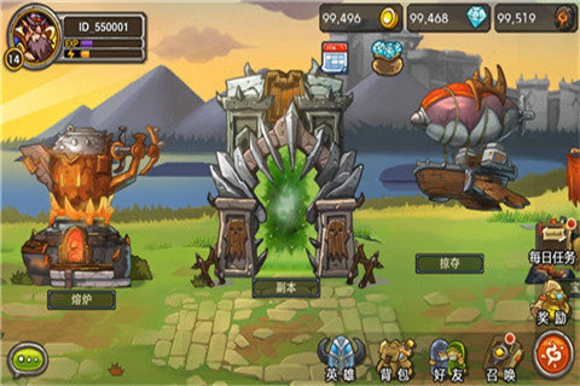 8. 英雄掉落:在戰(zhàn)斗關(guān)卡中有幾率掉落各種品質(zhì)的英雄,各種品質(zhì)的裝備,升級(jí)技能需要的合成卷軸,技能合成需要的合成樹(shù)等材料。