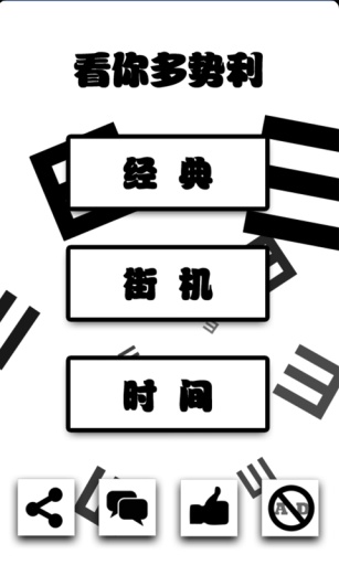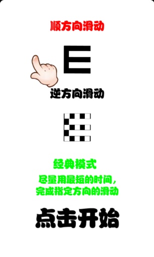 《看你多勢利》是一款考驗(yàn)玩家眼力和敏捷的休閑創(chuàng)意游戲。還記得視力檢查嗎?按照“E”的開口方向活動(dòng)手指即為通過,否則失??!小心特殊的花色“E”哦,需要反方向滑動(dòng)手指。手忙腳亂的時(shí)候,別忘記使用火箭摧毀全部石塊,助你一臂之力。分為經(jīng)典、街機(jī)、時(shí)間三種模式,考驗(yàn)玩家的機(jī)智!想檢查視力的玩家可以下載體驗(yàn)一下哦。
