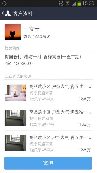 1、微聊:隨時隨地與客戶溝通。