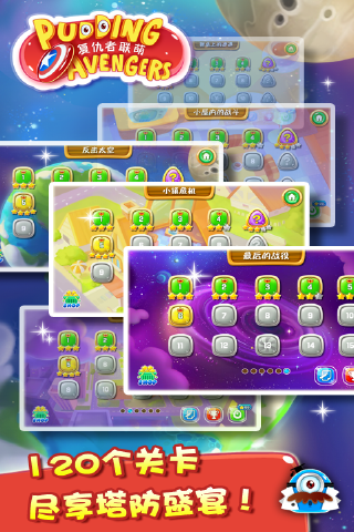 《復(fù)仇者聯(lián)萌》超萌布丁英雄出擊,強(qiáng)勢來襲!2014年度塔防手游精心巨作。美輪美奐的游戲畫面,痛快淋漓的戰(zhàn)斗畫面;9種超萌可愛的布丁英雄,多種滑稽搞怪的外星生物;更在傳統(tǒng)塔防玩法上新增了各種創(chuàng)新玩法,呈現(xiàn)多出口、橋梁、UFO、工程兵鋪(修)路、場外升級等新玩法;而且在游戲過程中增加了任務(wù)體系,完成各種任務(wù)會有豐厚的星星獎勵,更多驚喜等您探索。