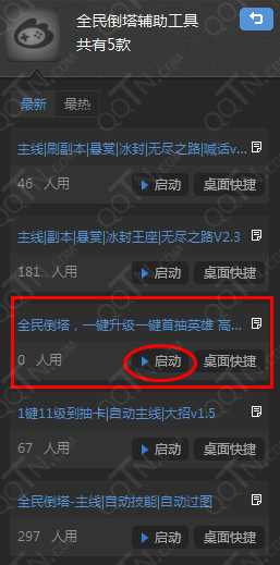 4.在全民倒塔輔助工具中“啟動”“全民倒塔一鍵升級一鍵首抽英雄高速版”