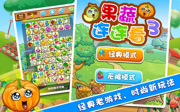 果蔬連連看3,在繼承連連看游戲經(jīng)典好玩的基礎(chǔ)上,增加各種各樣不同的移動(dòng)模式,大大拓展了連連看游戲的精髓,重新定義了連連看游戲的制作方法,必將給您帶來(lái)一個(gè)全新的改變世界觀的沉迷,讓您重新燃起對(duì)連連看游戲的熱愛!