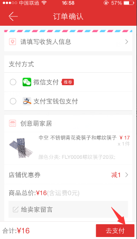 2、選擇想要的商品類型點(diǎn)擊確認(rèn),訂單上面就可以顯示收貨人信息以及支付方式,填寫完畢以后,支付即可完成付款。