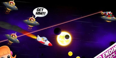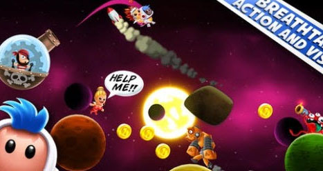 小小宇宙大救援游戲看起來(lái)非常歡樂(lè)流暢,全程只需要一根手指就能完成所有操作,玩起來(lái)有點(diǎn)像Chillingo的《糖果跳躍》,也是在一堆自轉(zhuǎn)的圓球上面跳躍前行,只不過(guò)換成了橫版的。不過(guò)《Space Chicks》的過(guò)關(guān)元素顯然豐富很多,玩家可以用宇航員背上的噴射器加速,繞開一些障礙物,還能把用失重的隕石砸向外形生物,宇宙海盜會(huì)和你互搶美女,要想點(diǎn)辦法把他們消滅掉??蓯?ài)迷你的卡通畫面加上喜感的音樂(lè)和音效,豐富多樣的玩法,是一款不錯(cuò)的小游戲。