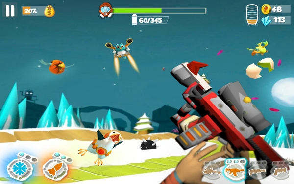 除了武器之外,您還可以使用可升級的道具,比如自動尋的導(dǎo)彈或雷暴,這只是其中幾種。有計劃地使用這些道具,完成更艱難的關(guān)卡并盡可能殺傷惡鳥!