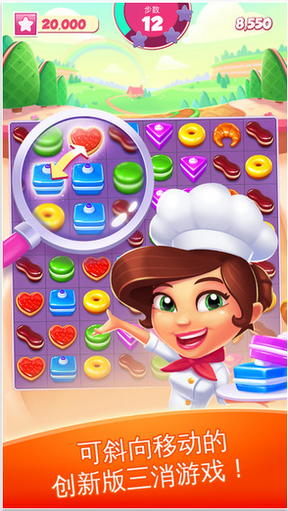 游戲采用首開先河的斜向移動(dòng)方式,為你提供更高的自由度和策略靈活度。各種強(qiáng)大的神器,能夠凍結(jié)時(shí)間,重新排列甜點(diǎn)等,助你輕松挑戰(zhàn)各大關(guān)卡!還有多種挑戰(zhàn)方式獨(dú)特又誘人,為你奉上烘焙蛋糕和服務(wù)顧客等豐富體驗(yàn)!【游戲特色】