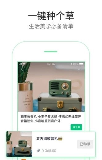 看到喜歡的小物,想去的旅行地,迅速種草。手指一點,商品美食書影家居物件旅行地,紛紛加入種草列表。一鍵種草,一鍵安利好友,成為朋友圈的生活家。
