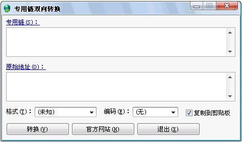 專用鏈雙向轉(zhuǎn)換 V1.6.0.160 簡(jiǎn)體中文綠色免費(fèi)版 支持格式:支持市面上的各種格式,包括網(wǎng)際快車(FlashGet)、迅雷(Thunder)、QQ旋風(fēng)、、FS2You等;