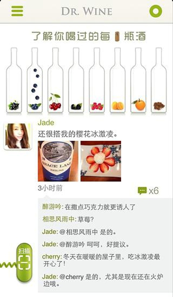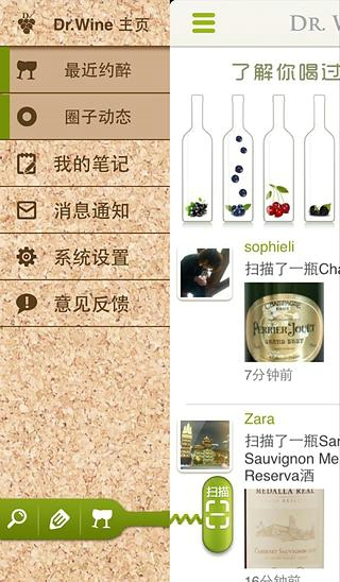 Dr.Wine葡萄酒博士是國內(nèi)首款葡萄酒社交應用,集葡萄酒掃描、分享、搜索及社交互動于一身。用戶可隨時隨地用手機拍攝酒標,通過后臺掃描識別技術(shù),獲取葡萄酒的各項信息;還能在線收藏葡萄酒,記錄品酒心得,發(fā)表文章供同好欣賞;更可以發(fā)起約醉邀請,結(jié)識更多的葡萄酒愛好者。