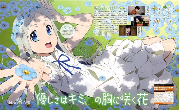 暢銷日漫《あの日見た花の名前を僕たちはまだ知らない》在大陸被譯作“我們?nèi)晕粗滥翘焖姷幕ǖ拿帧保绰劵麆t是該作的簡稱。本作是一部用直達(dá)內(nèi)心的筆觸描寫青春期的少男少女在面對戀情、友情、糾葛時,有歡欣笑容也有傷心淚水的青春原創(chuàng)動畫片。