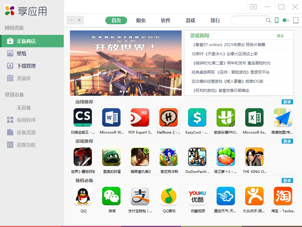 提供“一鍵安裝”,更可直接在手機(jī)上使用“享應(yīng)用”手機(jī)客戶端。