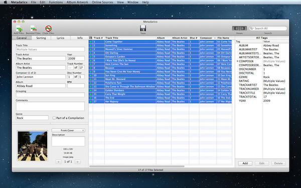 【1】Metadatics 是一個強(qiáng)大的音頻元數(shù)據(jù)編輯器,支持大多數(shù)常見的音頻文件類型包括MP3、M4A、AIFF、WAV、FLAC、APE、OGG、WMA等的批量編輯。【2】從在線資源元數(shù)據(jù)查找,基于元數(shù)據(jù)文件重命名,或者使用許多內(nèi)置的之一功能操作元數(shù)據(jù)。 Metadatics 提供了所有你需要編輯元數(shù)據(jù),提供方便和靈活性。