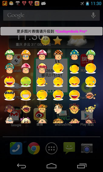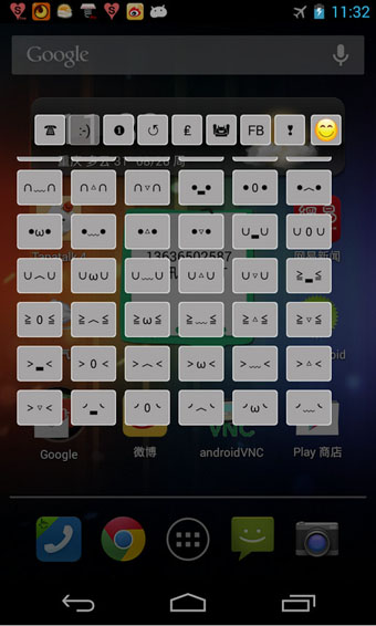 點擊漂浮在屏幕上的心形按鈕(也可以將其設置到通知欄)就可以選擇任何你喜歡的圖形和符號,然后粘貼到簡訊、facebook、twitter、論壇帖子、文本編輯器中。