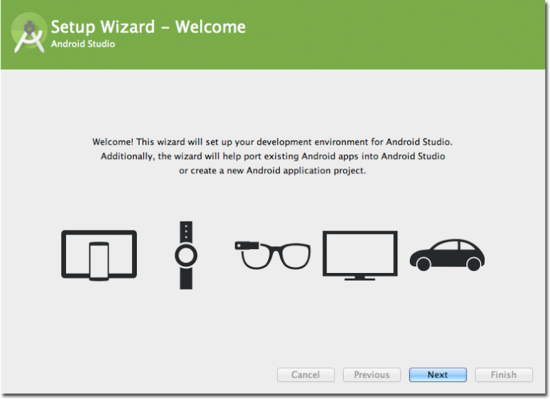Android Studio穩(wěn)定版提供了此前版本沒有過的“首次運行安裝向導”,為開發(fā)者安裝Android SDK、設置環(huán)境、建立模擬器以及模板提供指南。