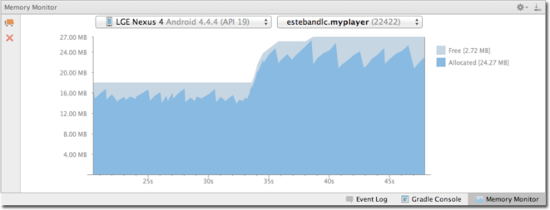 Android Studio還提供了名為Memory Monitor的性能分析工具,可提供應用內存使用情況隨時間發(fā)生的變化,從而幫助開發(fā)者找出改進性能的辦法。