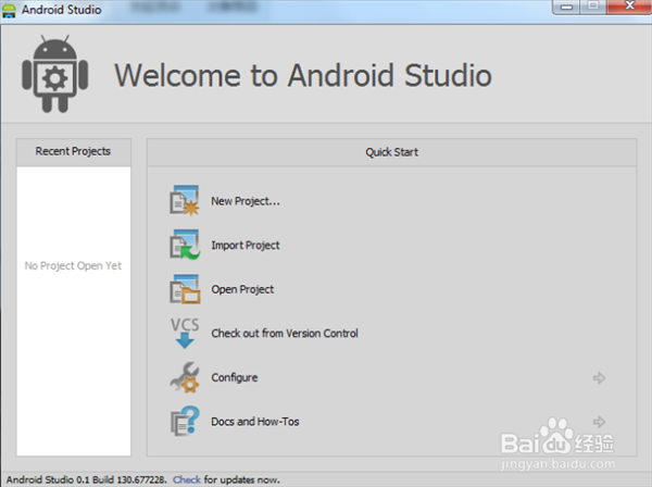 至此,Android Studio即安裝成功,可以新建自己的項目了。