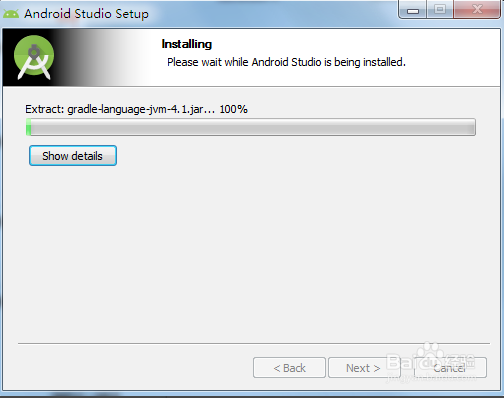 8、最后點擊 finish按鈕后,耐心等一會,然后再出來了一個創(chuàng)建新項目的進度條。第一次有點慢,會下載一些gradle的東西