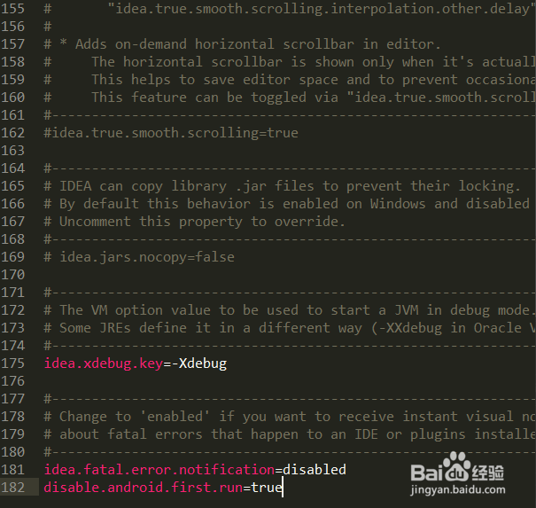 打開Android Studio的安裝目錄,使用文本編輯器打開idea.properties文件.