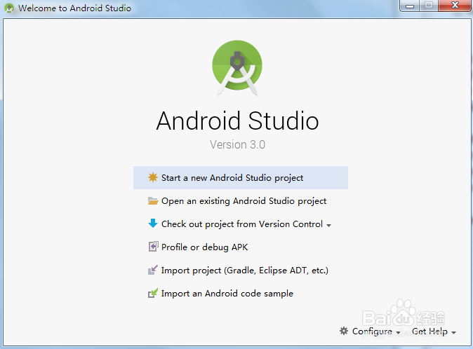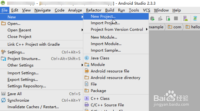 打開AndroidStudio,點擊“New Project”或“Start a new Android Studio project”。