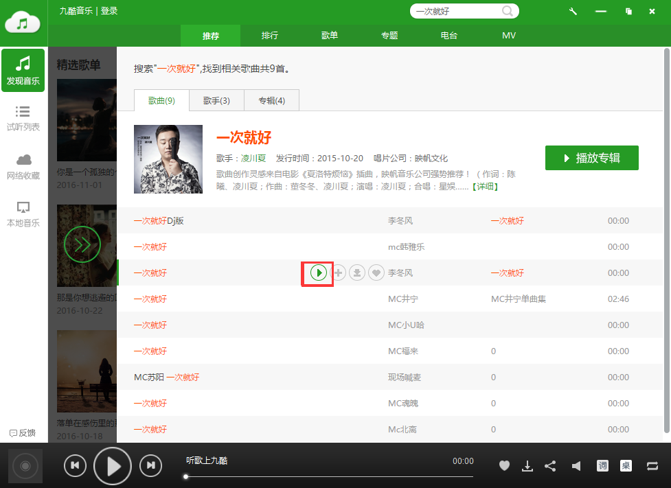 3、選擇自己想聽的歌曲版本點(diǎn)擊播放即可