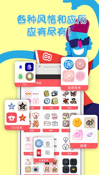 最有個性的圖標美化神器,豐富的圖標樣式,獨特的國內(nèi)圖標,便捷的添加方式,可愛的界面操作,讓你的圖標與眾不同!總有一款適合你!快來動動爪子試試吧!