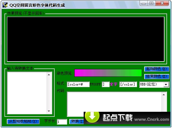 QQ空間留言彩色字體代碼生成 V1.0 簡(jiǎn)體中文綠色免費(fèi)版 一款很好的軟件!可以把字體轉(zhuǎn)換成QQ空間代碼、網(wǎng)站代碼、UBB代碼!讓你留言的時(shí)候更具個(gè)性,同時(shí)也給你帶來(lái)了極大的方便,《QQ空間留言彩色字體代碼生成》是你QQ空間的管家!歡迎大家的使用!