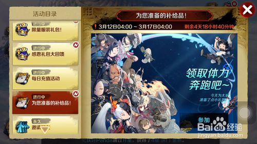 在活動(dòng)列表當(dāng)中,還有特別的體力補(bǔ)給,根據(jù)你登錄的次數(shù)來(lái)計(jì)算,登錄的次數(shù)越久,送的體力以及鉆石,就會(huì)比之前的多,所以千萬(wàn)不要中斷你的連續(xù)登陸天數(shù)哦。