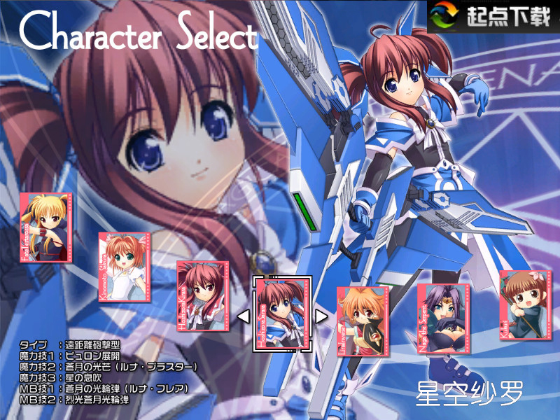 奈葉 『魔法少女奈葉A's』(高町奈葉.遠距離炮擊型.是最初的角色,被作為開發(fā)其他全部人物的基準)菲特 『魔法少女奈葉A's』(Fate.中距離萬能型,所有角色中唯一可以切換中/近戰(zhàn)模式角色)
