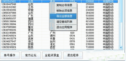 4.右鍵查詢結(jié)果可以進(jìn)行信息導(dǎo)出