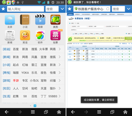 每年的春運搶火車票都像是在打仗,360手機搶票瀏覽器為你回家之路助力,內置內置360搶票王手機版,針對一票難求的窘境特別推出搶票提醒、智能刷票、無賬號購買、免登陸查詢等功能,離線斷網(wǎng)都可以搶哦,絕對是你手機搶票最好的瀏覽器。
