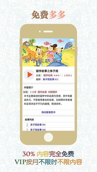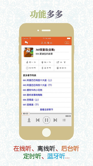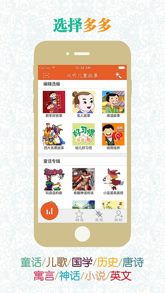 兒童故事是開啟兒童智慧大門的一把鑰匙。聽故事可以豐富兒童知識(shí), 同時(shí)提升思維能力和想象能力, 促進(jìn)兒童的思維更加細(xì)微準(zhǔn)確, 想象更加斑斕、開闊。讓兒童插上一雙有聲的翅膀, 遨游在故事的海洋中。必聽兒童故事是少年兒童的童年好伙伴和良師益友。 這里有最美好的童話寓言、最經(jīng)典的歷史故事、最好聽的成語故事、國內(nèi)外最著名的小說…媽媽再也不用為每天小孩睡前故事犯愁了, 輕輕開啟你的iPhone或iPad, 選好故事, 設(shè)定收聽時(shí)長, 好了, 今天的故事開始了…【更新日志】